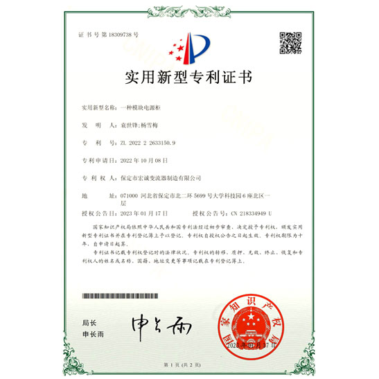 一種模塊電源柜實(shí)用新型專(zhuān)利證書(shū)