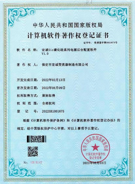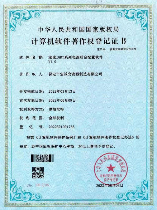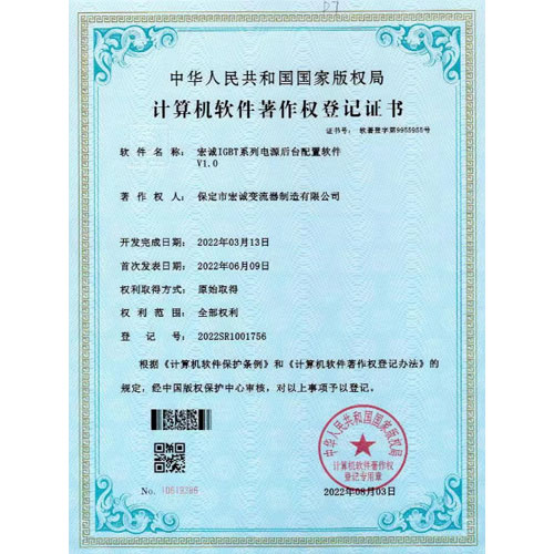 計(jì)算機(jī)軟件著作權(quán)登記證書(shū)--HC宏誠(chéng)整流器控制系統(tǒng)V1.0